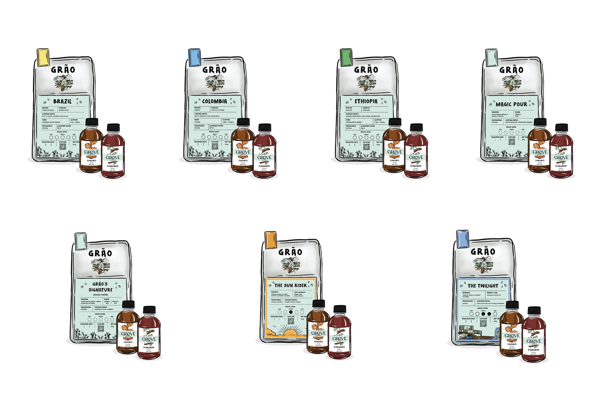 Available online, Grão’s Coffee and Syrups Bundles bring premium coffee and delightful flavors straight to your doorstep. Choose between the Coffee Enthusiasts Kit or the Connoisseurs Pack and start elevating your coffee experience today.